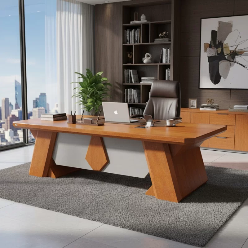 Bàn lãnh đạo cao cấp sử dụng chất liệu Verneer kết hợp Melamine, yếm sơn ghi.