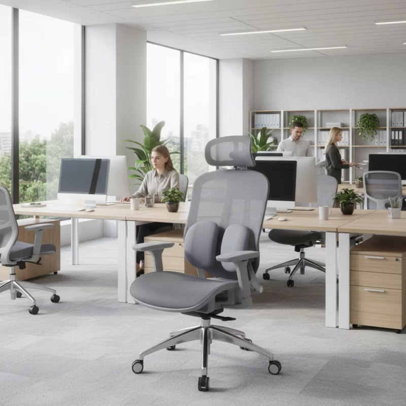 - Tựa lưng: Khung nhựa cao cấp Bọc vải lưới thoáng và độ chịu lực cao. tựa lưng có thể ngả hãm, có đỡ lưng